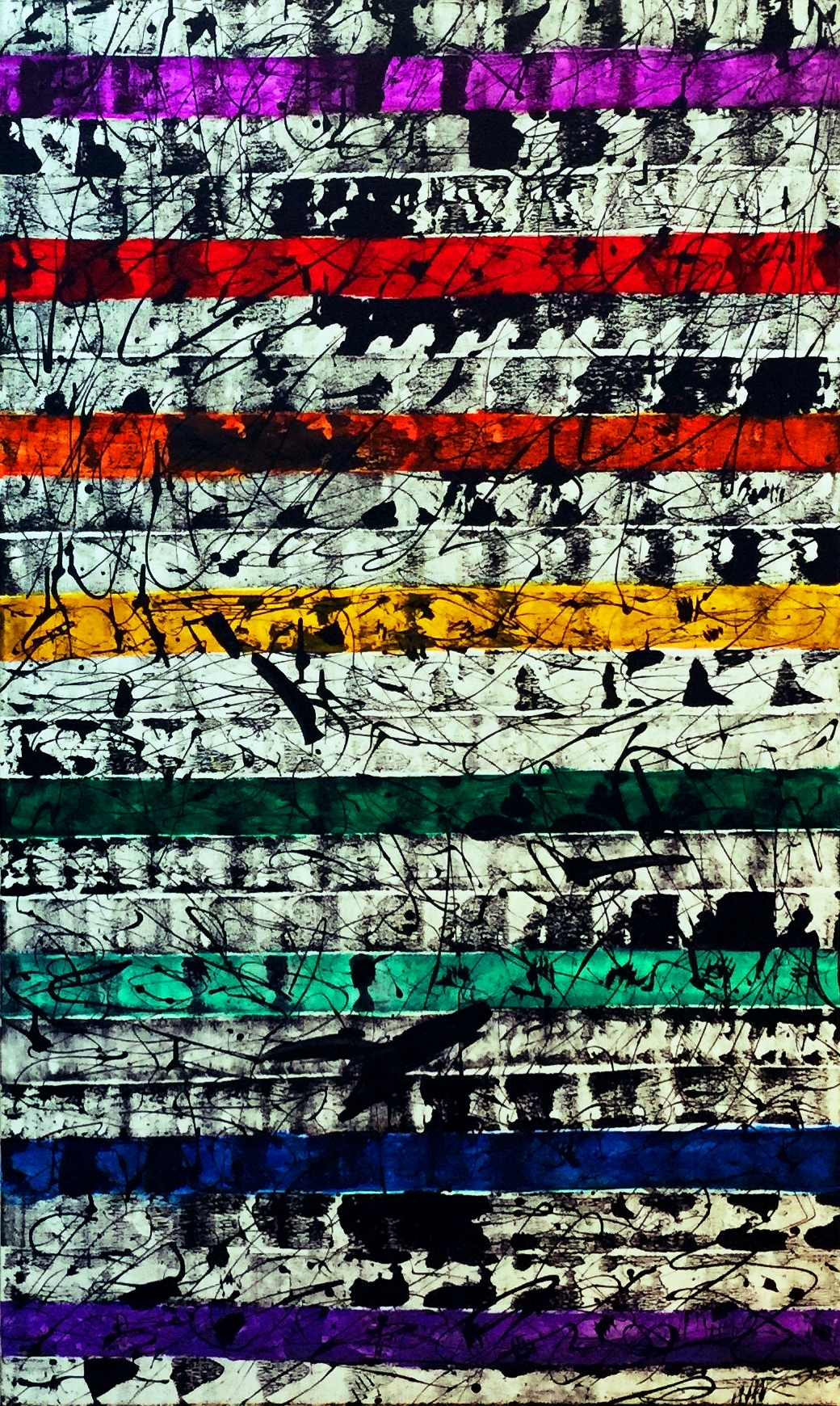No. 2322 “Colorful Dialogs” $5,750. Original Mixed Acrylic on Premium Stretched canvas 36″ x 60″ x 1.5″