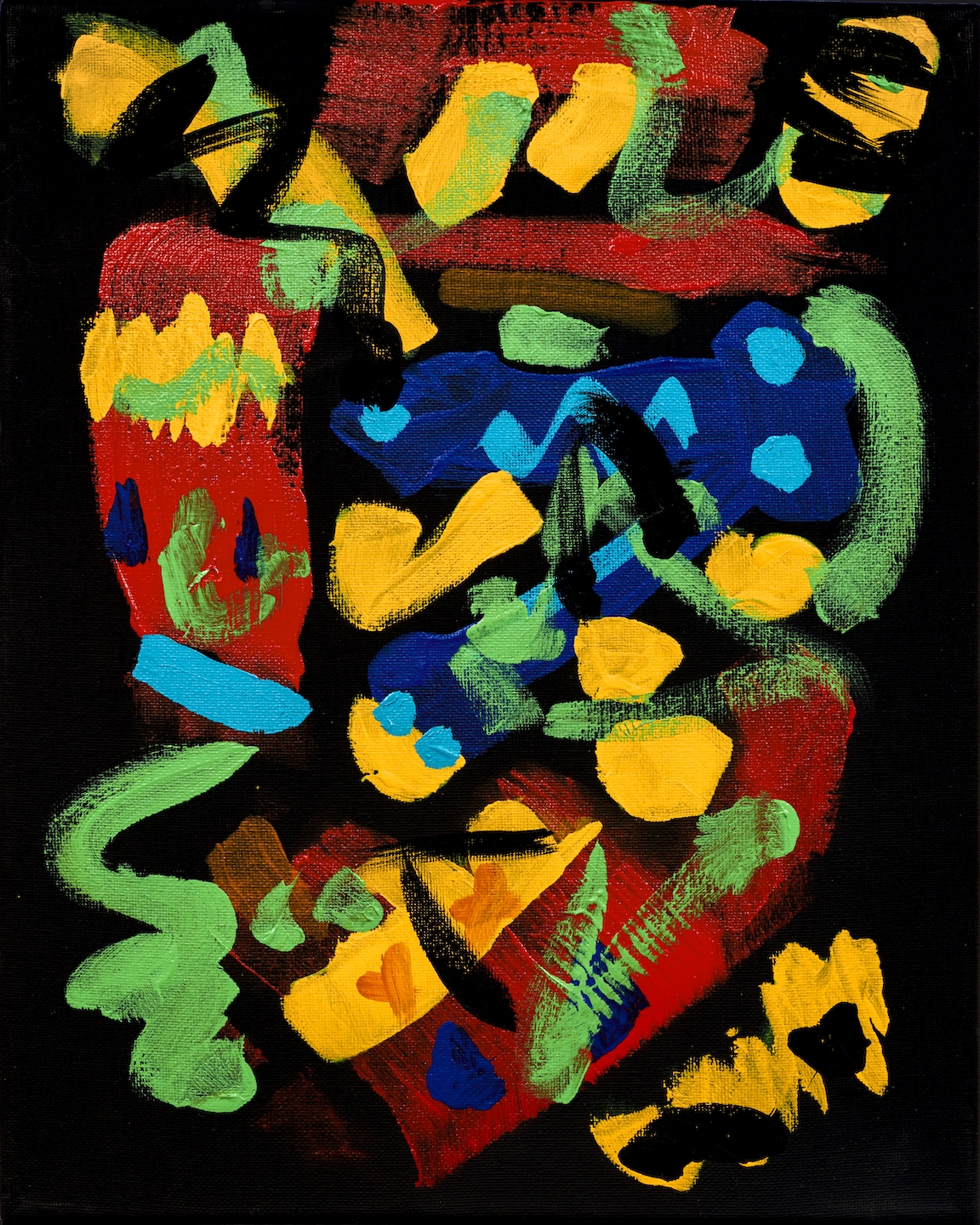 Original mixed acrylic paint on 14″h x 11″w x 0.5″ stretched canvas. Artist number, signature and date en verso. May be viewed from each of 4 sides for view enjoyment. San Diego 2021.