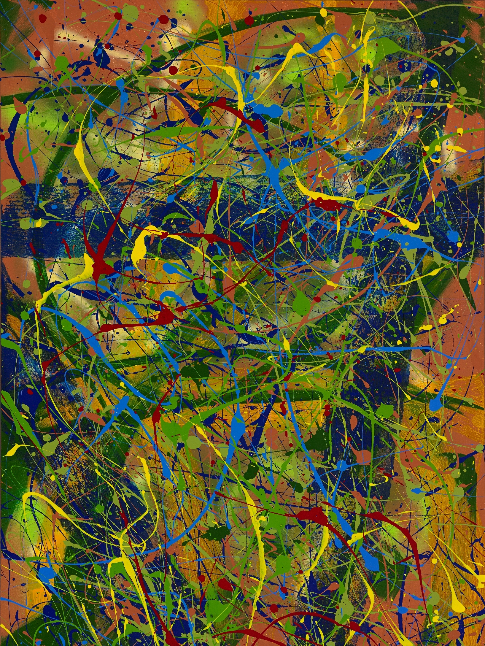 © 2014 John R Kazanjian, Las Vegas, NV. Artist influences: Joan Miro, Sam Francis and Jackson Pollack. Artist Signature, Year and Piece Number on Back of Canvas. Placement: Diptych Canvases may be paired together horizontally or vertically resulting in displays of 36″H x 96″W or 48″H x 72″W.