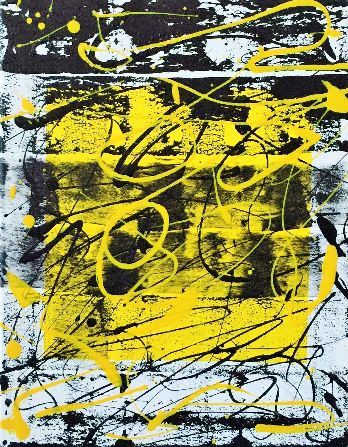 No. 2343. Film Strip Series: “Etude Yellow”. $175. Original Mixed Acrylic on stretched canvas 11″ x 14″ x .33″.