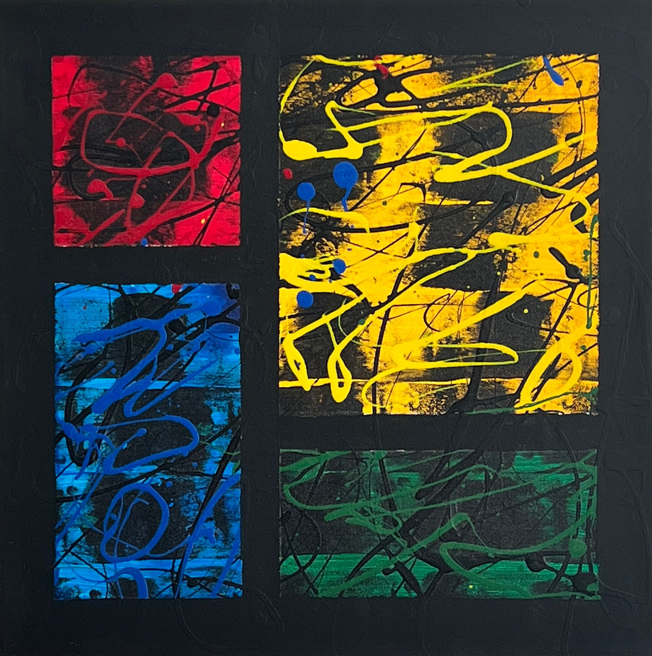 © 2015 – 2022 John R Kazanjian, San Diego, CA. Artist influences: Joan Miro, Yaacov Agam, Sam Francis, Bauhaus Arts and Textiles. Artist signature, Year and Piece Number on back of canvas. Placement: canvas may be rotated for flexibility in display and for viewers’ additional experiences.
