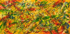 © 2014 John R Kazanjian, Las Vegas, NV. Artist influences: Joan Miro, Jackson Pollack, Sam Francis. Artist Signature, Year and Piece Number on Back of Canvas. Placement: Canvas may be rotated for flexibility in display and for viewers’ additional experiences.