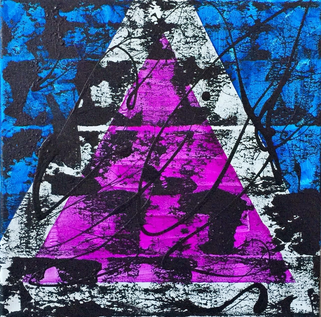 No. 2333. Film Strip Series: “Window Pane: Purple and Blue”. $150. Original Mixed Acrylic on stretched canvas 12″ x 12″ x .33″.