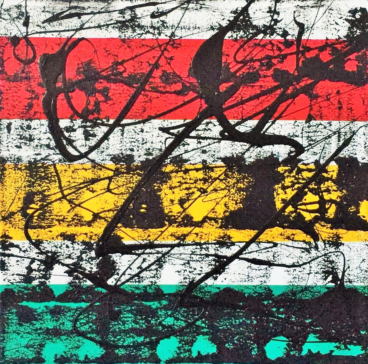 No. 2335. Film Strip Series: “Window Pane: Teal, Yellow and Cinnamon”. $150. Original Mixed Acrylic on stretched canvas 12″ x 12″ x .33″.