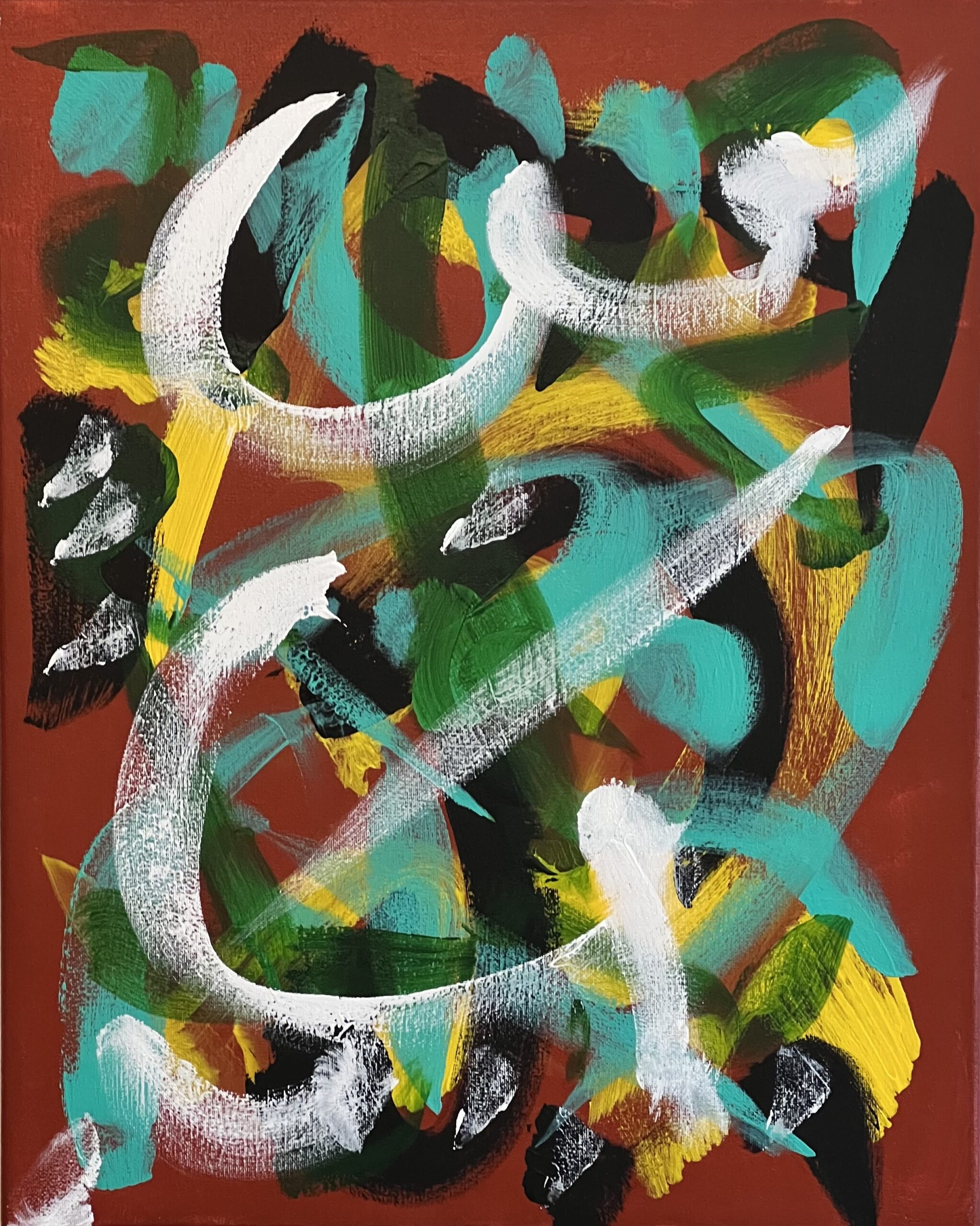 Original mixed acrylic paint on 20″h x 16″w x 0.5″ stretched canvas. Artist number, signature and date en verso. May be viewed from each of 4 sides for view enjoyment. San Diego 2022.