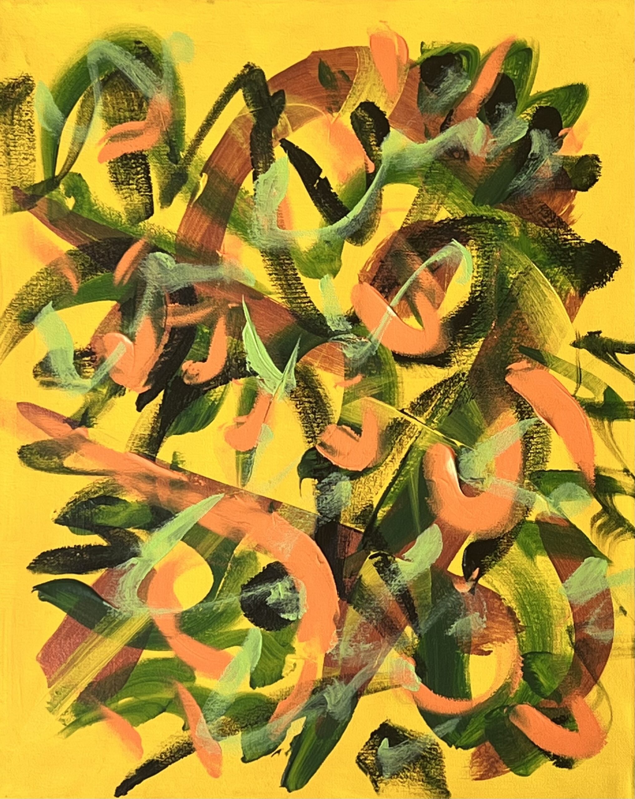 Original mixed acrylic paint on 20″h x 16″w x 0.5″ stretched canvas. Artist number, signature and date en verso. May be viewed from each of 4 sides for view enjoyment. San Diego 2022.