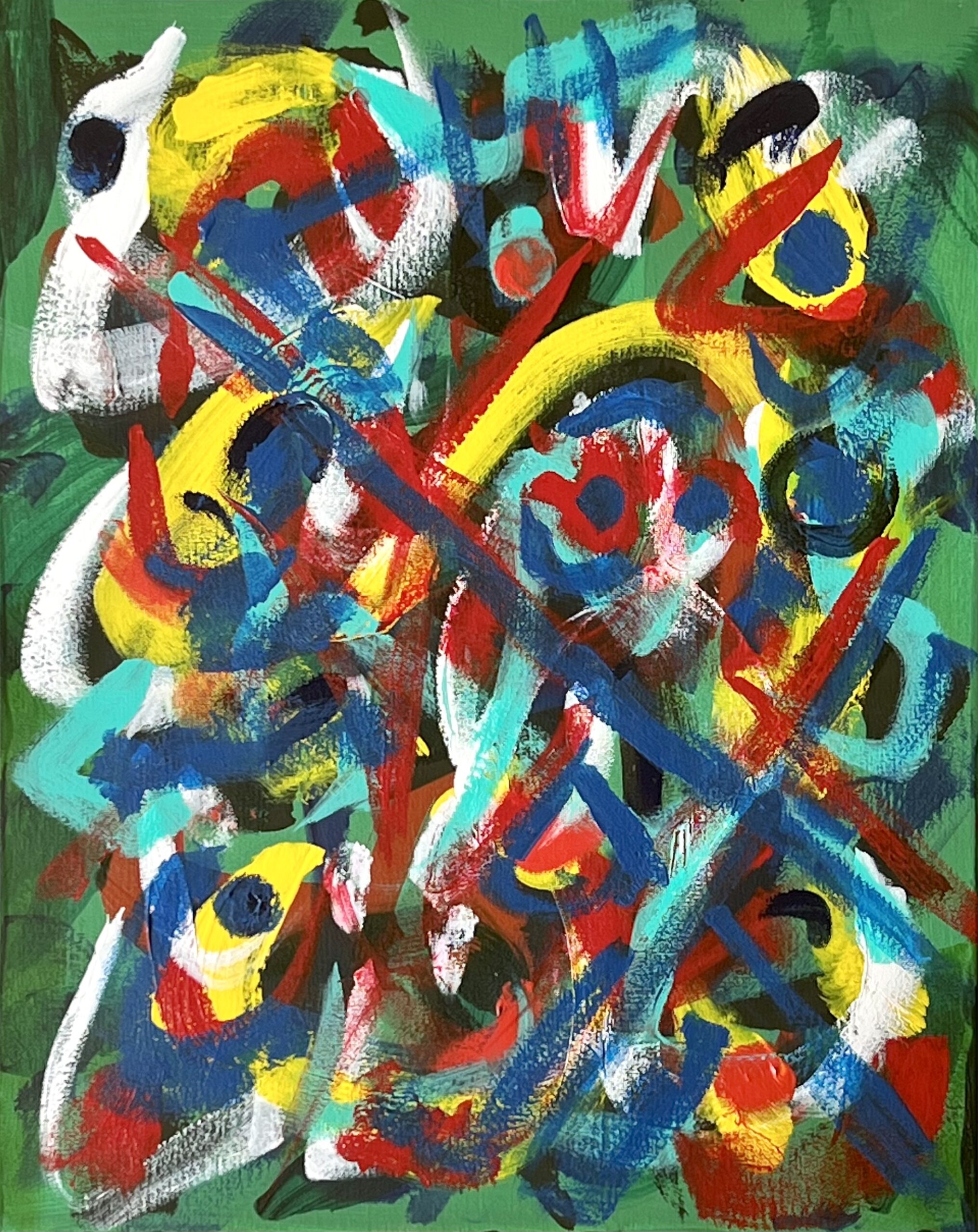 Original mixed acrylic paint on 20″h x 16″w x 0.5″ stretched canvas. Artist number, signature and date en verso. May be viewed from each of 4 sides for view enjoyment. San Diego 2022.