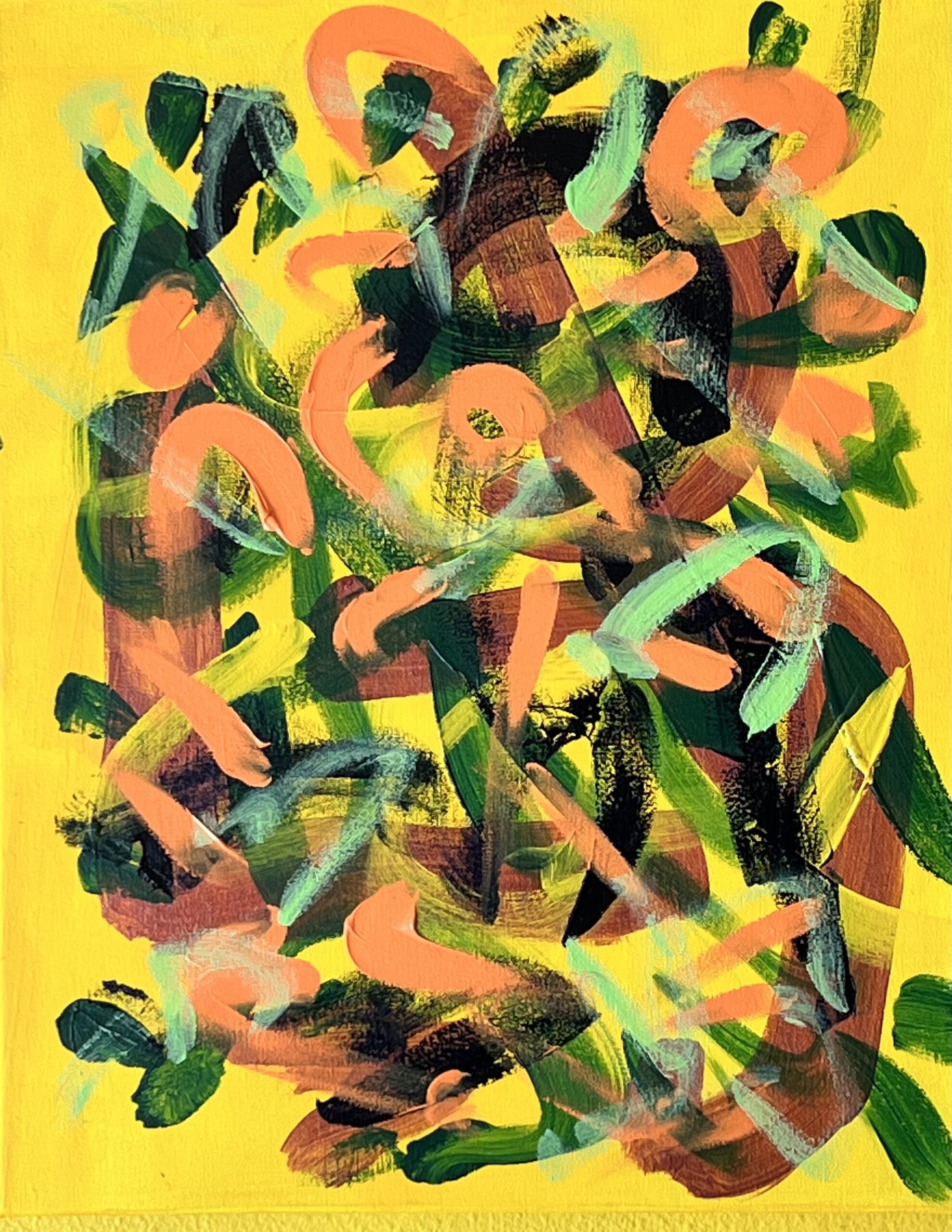 Original mixed acrylic paint on 20″h x 16″w x 0.5″ stretched canvas. Artist number, signature and date en verso. May be viewed from each of 4 sides for view enjoyment. San Diego 2022.