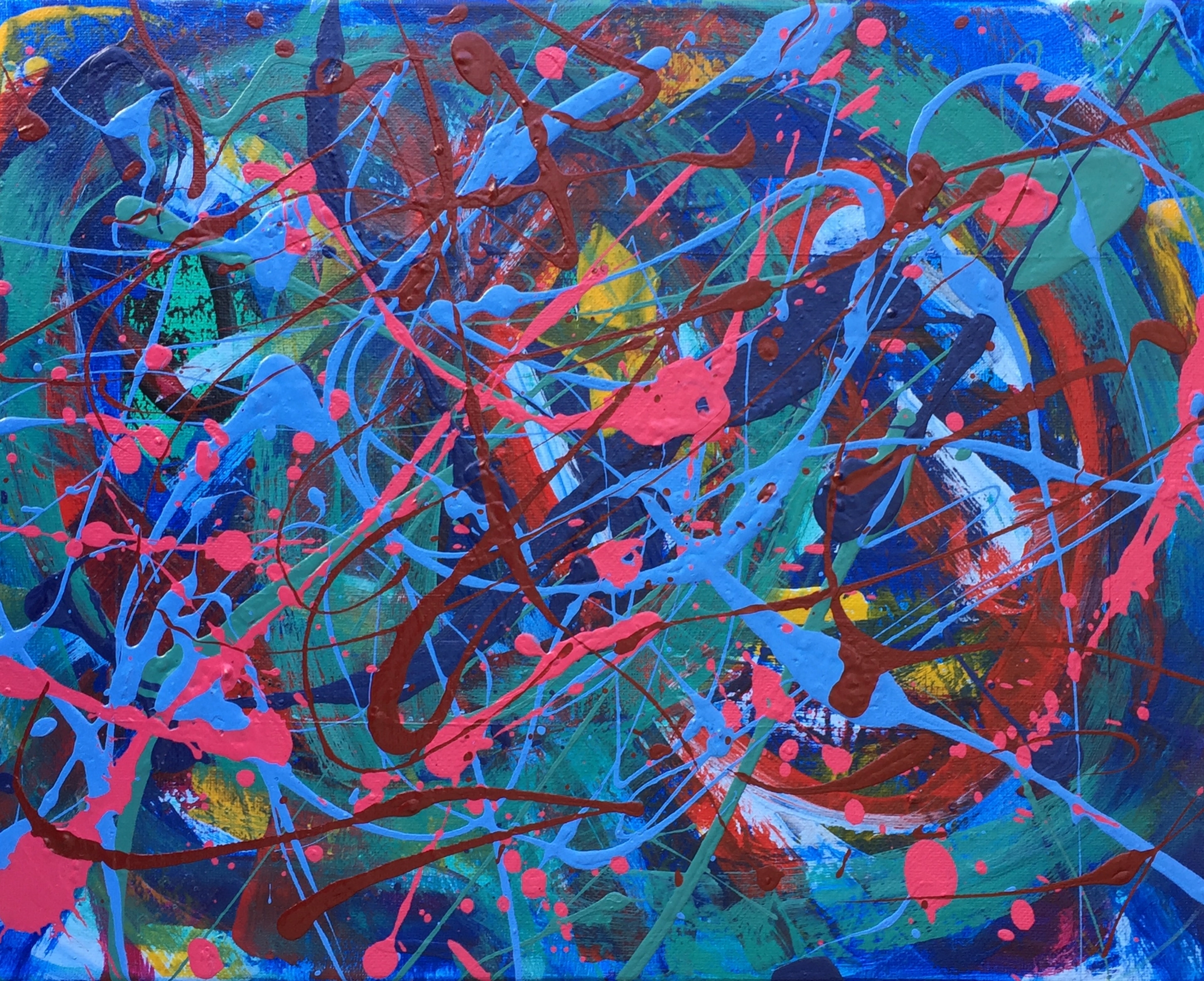 No. 2337. “Etude Blue” from the Wellness Chakra Healing Series. $225.00. Original mixed acrylic paints on 11″ x 14″ x .33″ stretched canvas. © 2015 John R Kazanjian, San Diego, CA. Artist influences: Karel Appel, Joan Miro, Sam Francis, Bauhaus Arts and Textiles. Artist signature, Year and Piece Number on back of canvas. Placement: canvas may be rotated for flexibility in display and for viewers’ additional experiences.