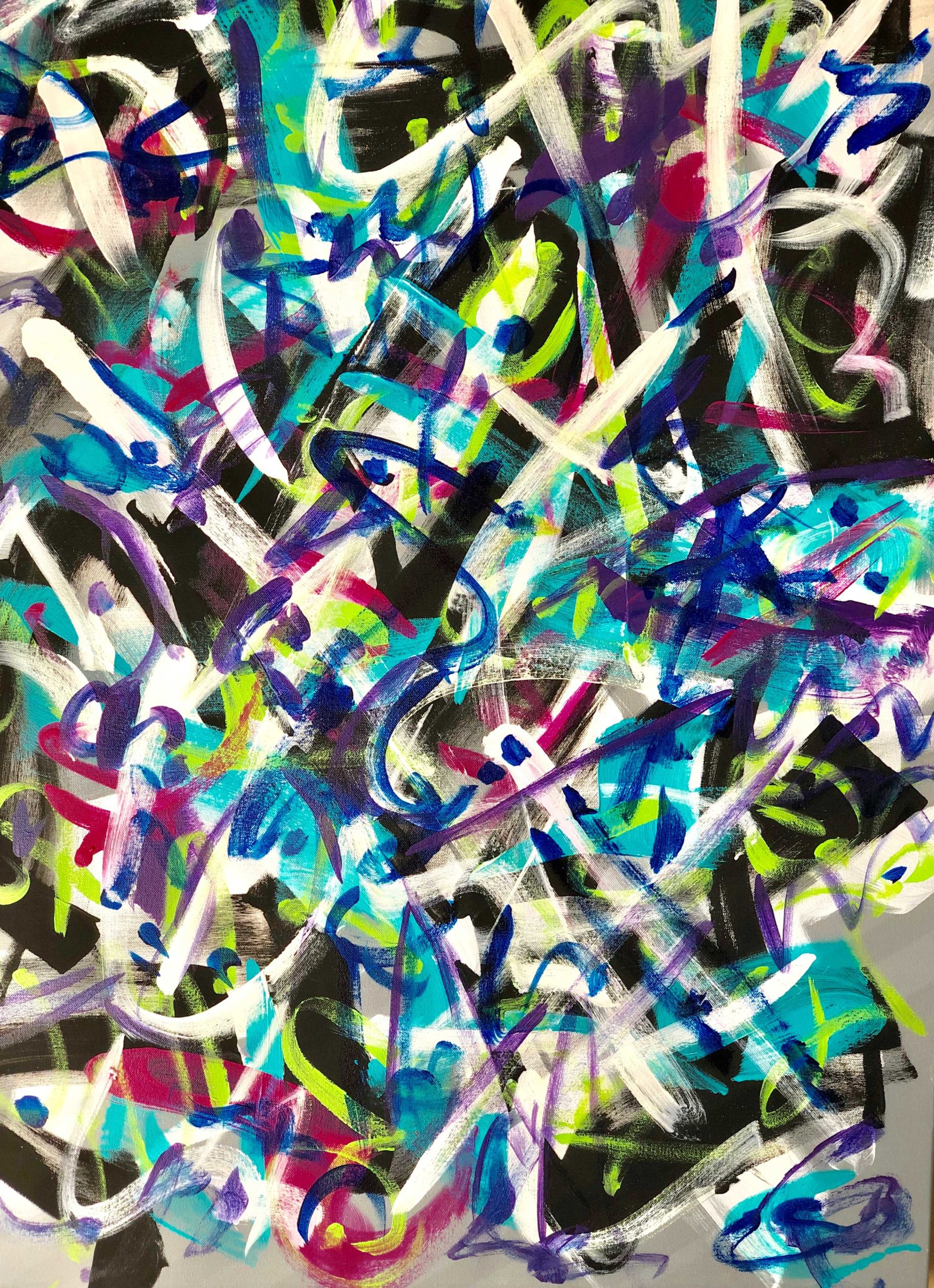 No. 2358. “Mental Masturbation of Partisan Politics” from the Protest Series. SOLD. $2,950. Original mixed acrylic paint on 30″ x 40″ x 1.5″ stretched canvas. © 2018 John R Kazanjian, San Diego, CA. Artist influences: Karel Appel, Joan Miro, Paul Klee, Kandinsky. Artist Signature, Year and Piece Number on Back of Canvas.
