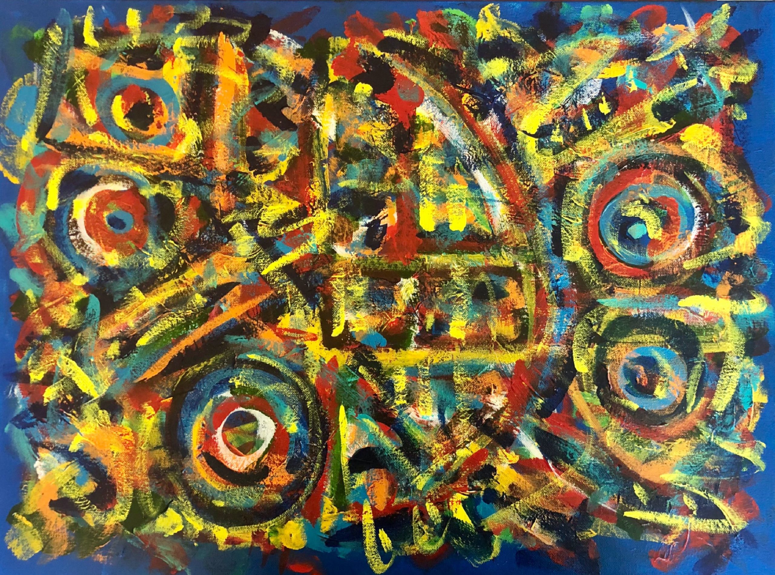 No. 2388. “”Homage to Paul Klee” from the Artist’s Tribute Series. $1,950. Original Mixed Acrylic on 24″ x 18″ x 1.5″ Premium Quality Stretched Canvas. © John R Kazanjian, San Diego, CA 2019. Artist influences: Karel Appel, Joan Miro, Paul Klee, Wassily Kandinsky. Artist Signature, Year and Piece Number on Back of Canvas. Placement: Canvas may be rotated for flexibility in display and for viewers’ additional experiences..