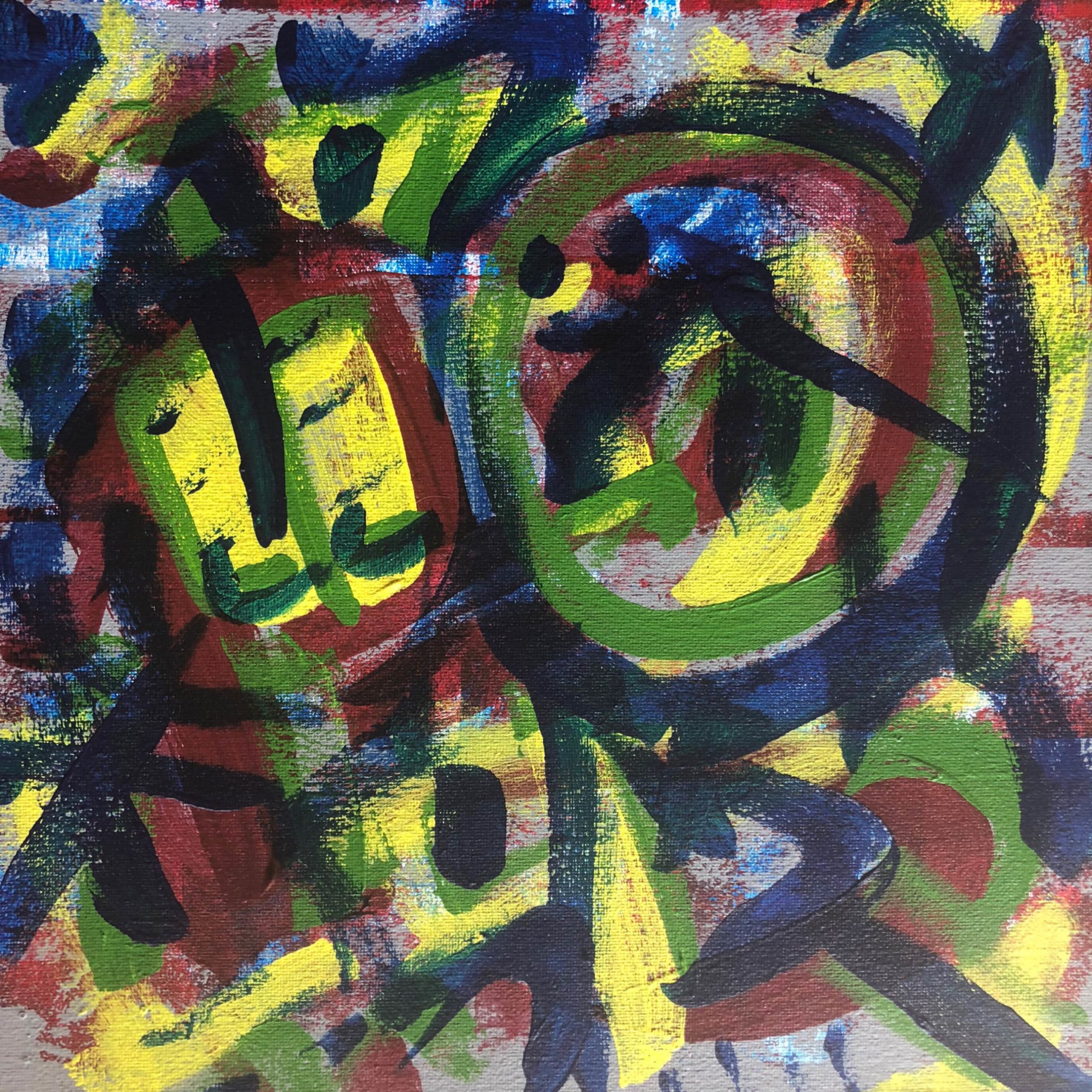 No. 2393. “Miro / Klee Doodles 1″ from the Tribute Series. $250. Original mixed acrylic paint on 12″ x 12″ x .5” stretched canvas. © 2019 John R Kazanjian, San Diego, CA. Artist influences: Paul Klee, Joan Miro, Bauhaus Arts. Artist signature, Year and Piece Number on back of canvas. Placement: canvas may be rotated for flexibility in display and for viewers’ additional experiences.