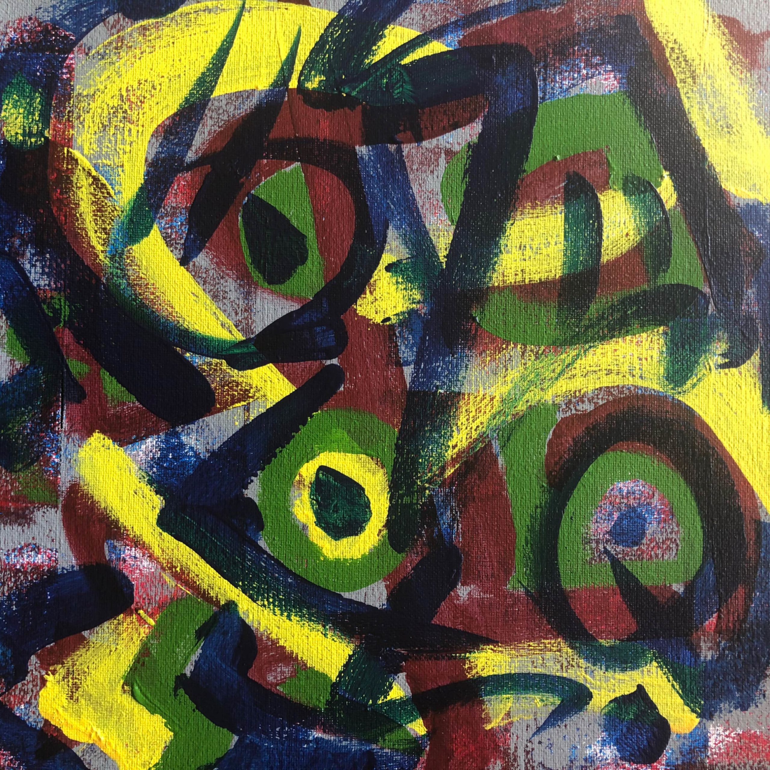 No. 2395. “Miro / Klee Doodles 3″ from the Tribute Series. $250. Original mixed acrylic paint on 12″ x 12″ x .5” stretched canvas. © 2019 John R Kazanjian, San Diego, CA. Artist influences: Paul Klee, Joan Miro, Bauhaus Arts. Artist signature, Year and Piece Number on back of canvas. Placement: canvas may be rotated for flexibility in display and for viewers’ additional experiences. Artist influences: Paul Klee and Joan Miro. Canvas may be rotated for flexibility in display and for viewers’ additional experiences.