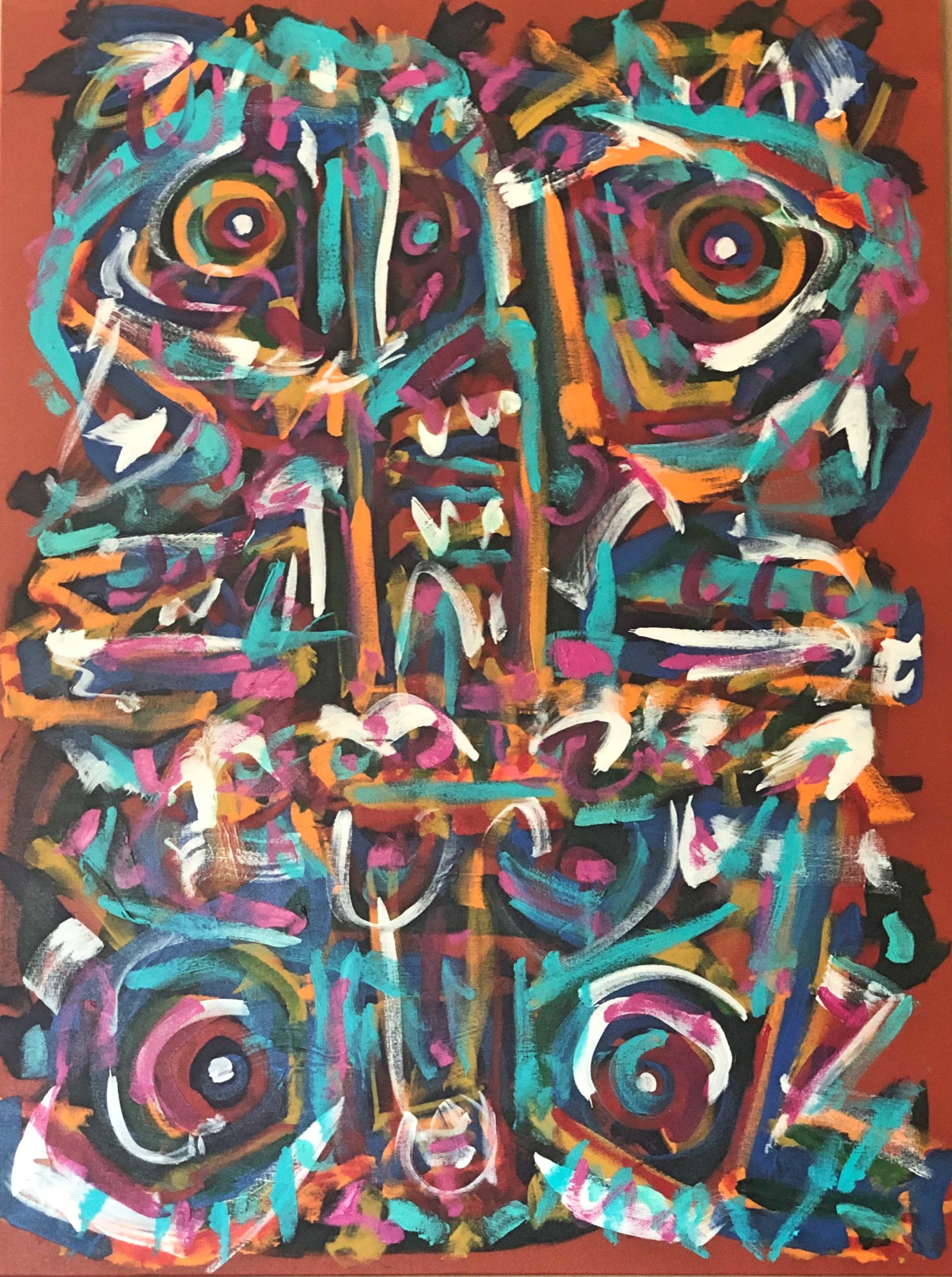 No. 2385. “Primitive Warriors Dancing-2″ from Artist’s Primitive Series. $6,500. Original Mixed Acrylic on 48″ x 36″ x 1.5” Premium Quality Stretched Canvas. © John R Kazanjian, San Diego, CA 2019. Artist influences: Karel Appel, Joan Miro, Paul Klee, Wassily Kandinsky. Artist Signature, Year and Piece Number on Back of Canvas